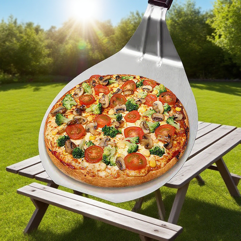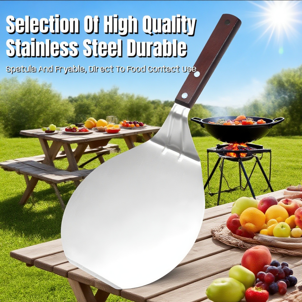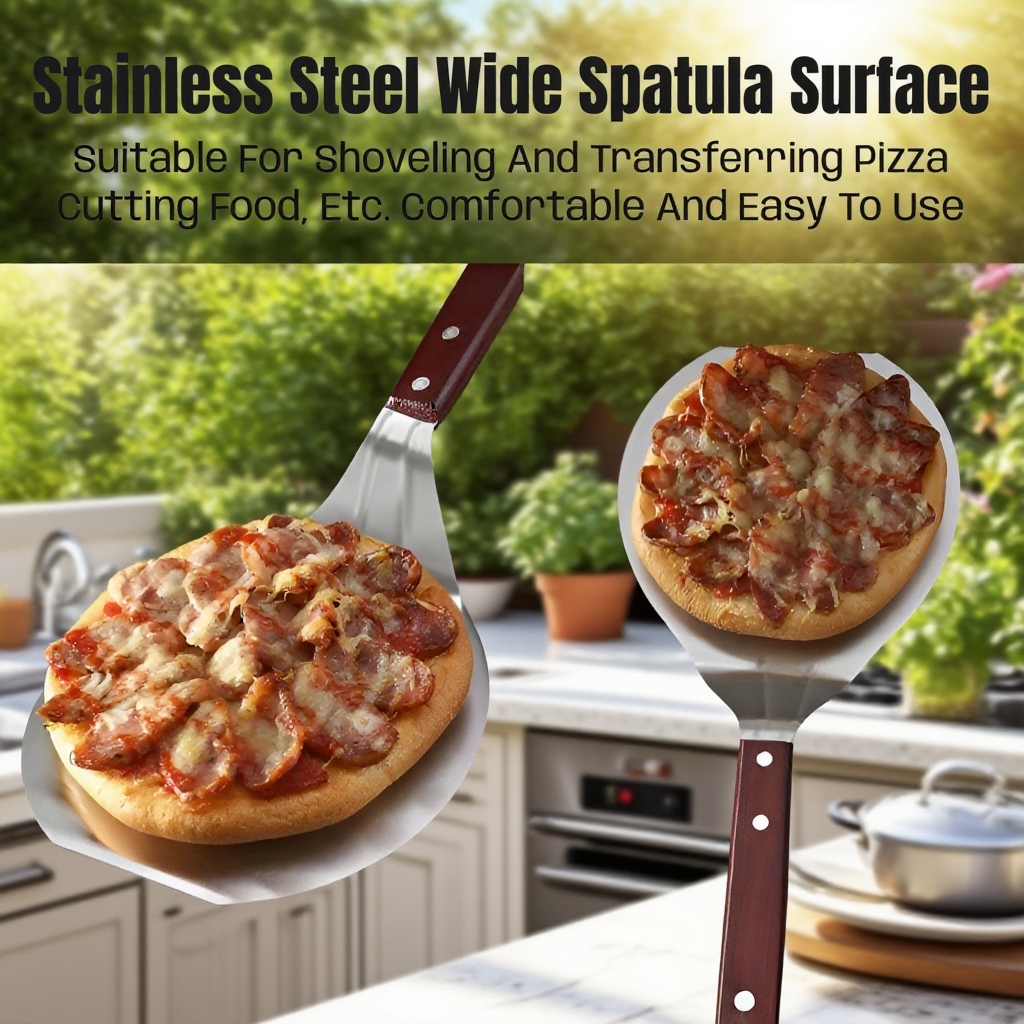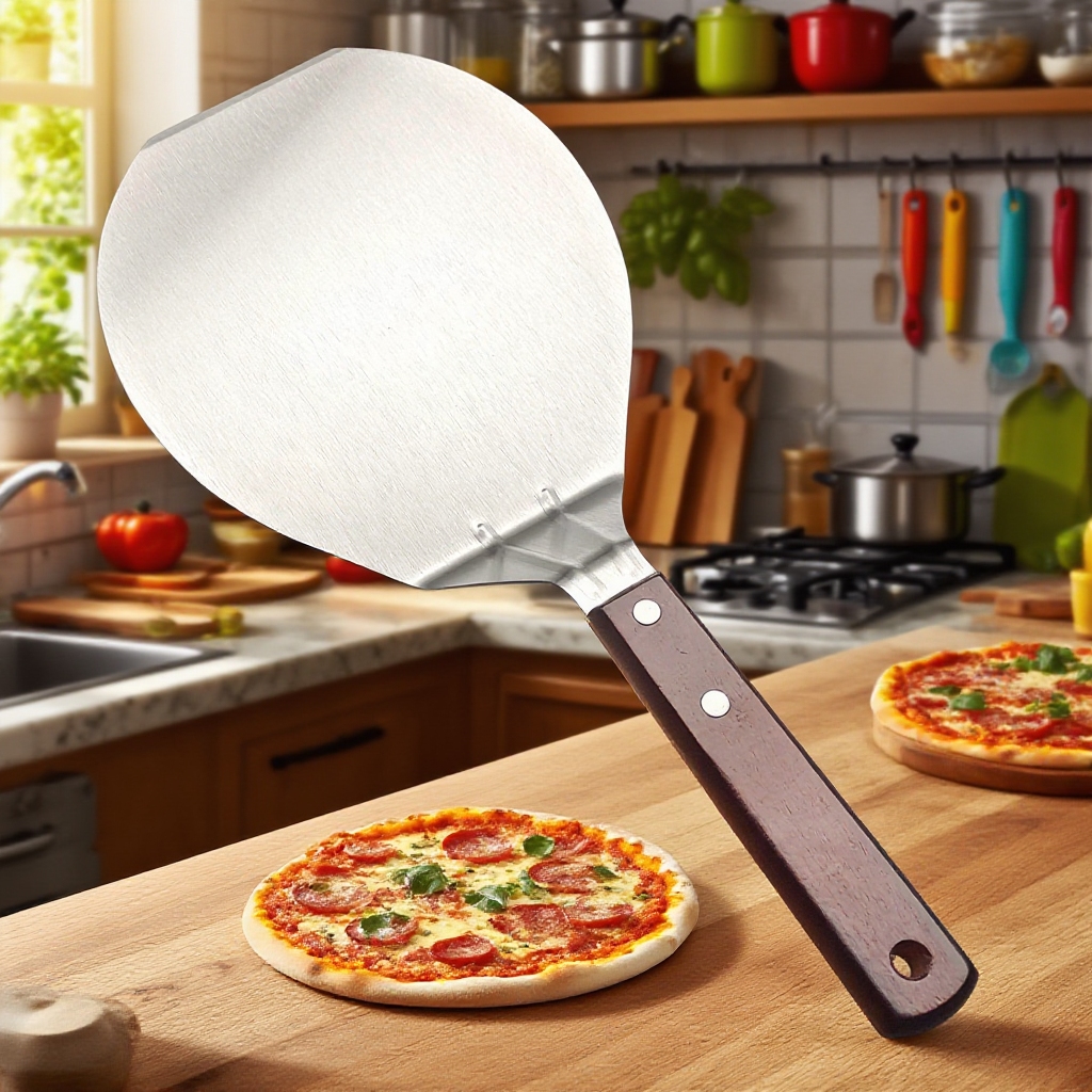 Stainless Steel Pizza Shovel with Wooden Handle – Large Round Pizza Spatula for Grill